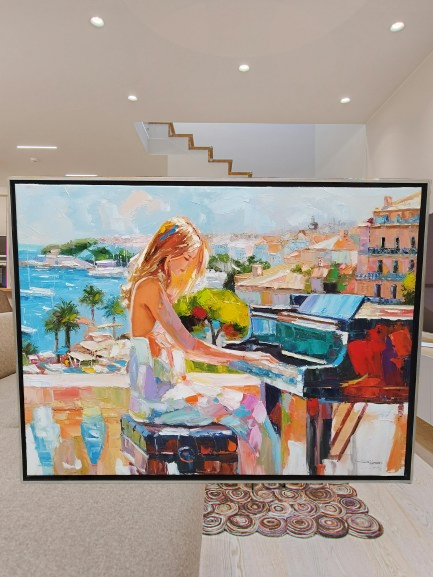Tableau original de C. Ghesquière intitulé Mélodie Côtière, grand format 90 X 120 cm