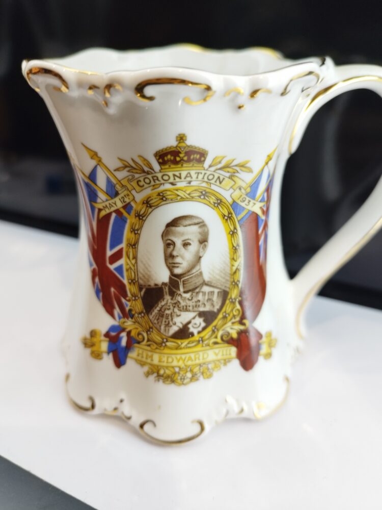 Vintage mug commemorating the coronation of King Edward VIII in 1937. Excellent condition. Its shape is very unusual. A beautiful piece for a collector!.