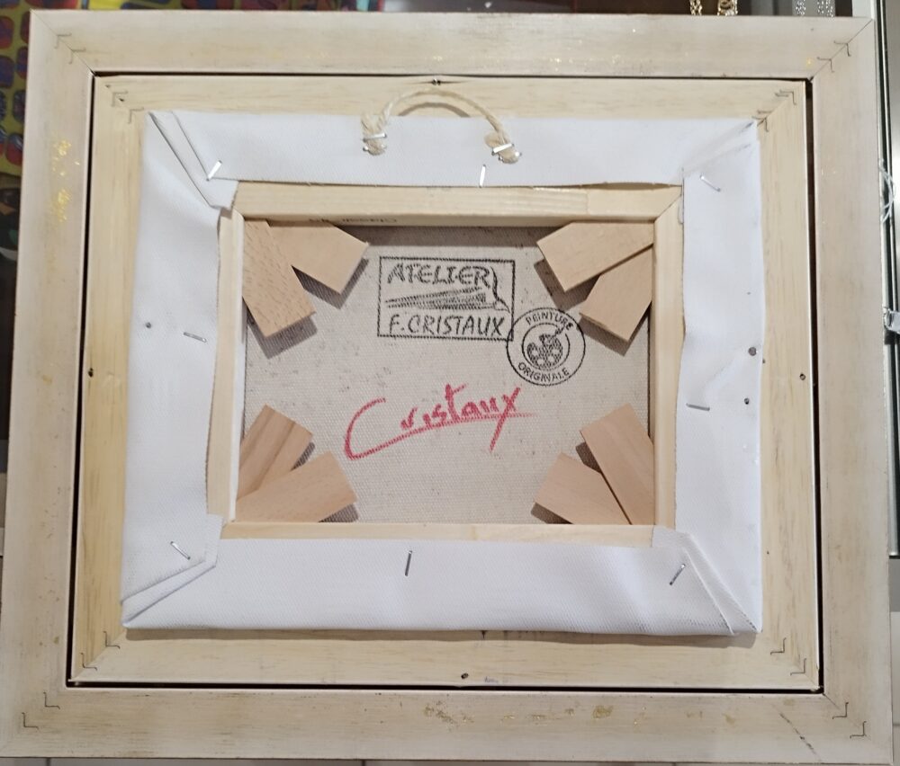 Framed size: 30 x 35 cm and 3 cm thick. Canvas size alone: 22 x 27 cm. The painting is sold with the frame shown in the photo. We also provide its expert appraisal certificate. Carefully packaged and shipped with insurance.